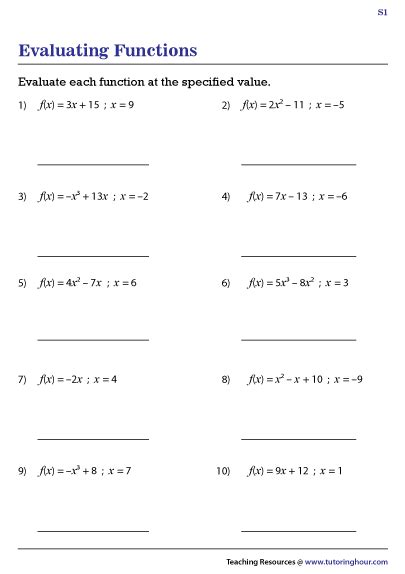 Web evaluating functions worksheets math > algebra > functions > evaluate take your pick from our evaluating functions worksheets to recap evaluating expressions or test. Web the printable worksheets comprise polynomial expressions like 2x 3 + 3x 2 + 4x + 5. Web these evaluating single functions worksheets will produce problems for practicing evaluating general functions.