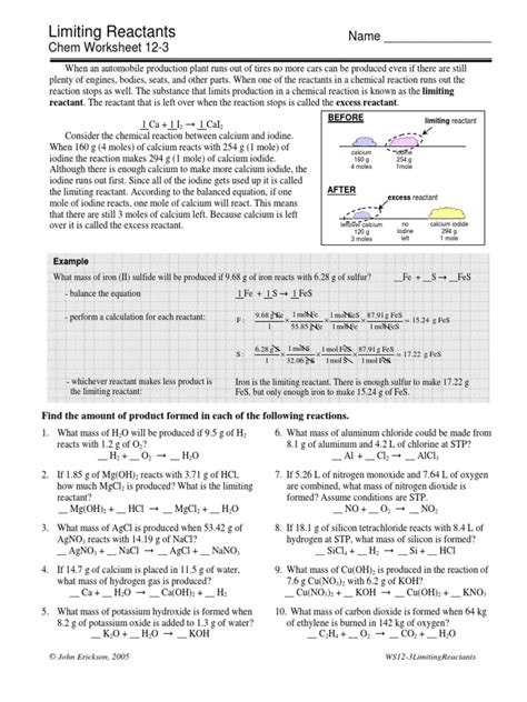 Limiting Reactants Chem Worksheet 12 3. How many moles of chlorine gas can be produced if 4 moles of fecl 3 react with 4 moles of o 2? Web explore limiting reactants with this comprehensive worksheet, a great way to engage and stimulate aqa gcse chemistry learning.